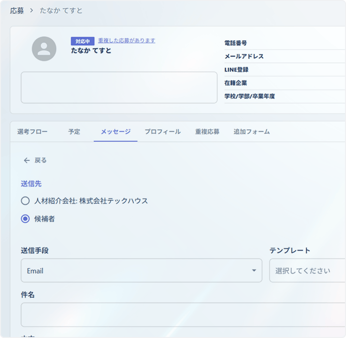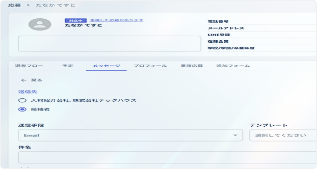 メール・SMS・LINE等で応募者と円滑にコミュニケーション。自動返信機能で迅速な対応を実現