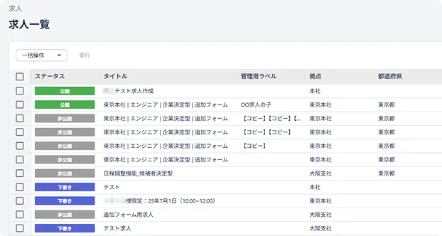 全拠点の求人を一元管理。給与や待遇の変更も一括更新で、運用ミスと工数を大幅削減