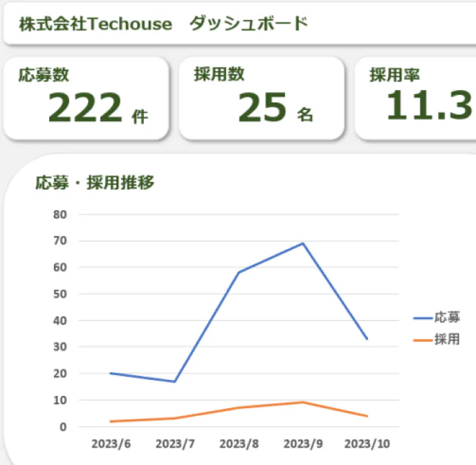「どの拠点で」「どの媒体から」「どの職種の」応募が多いか、採用率はどうかを一目で把握。データに基づく採用改善のPDCAを、社内で自走できる環境を提供します。